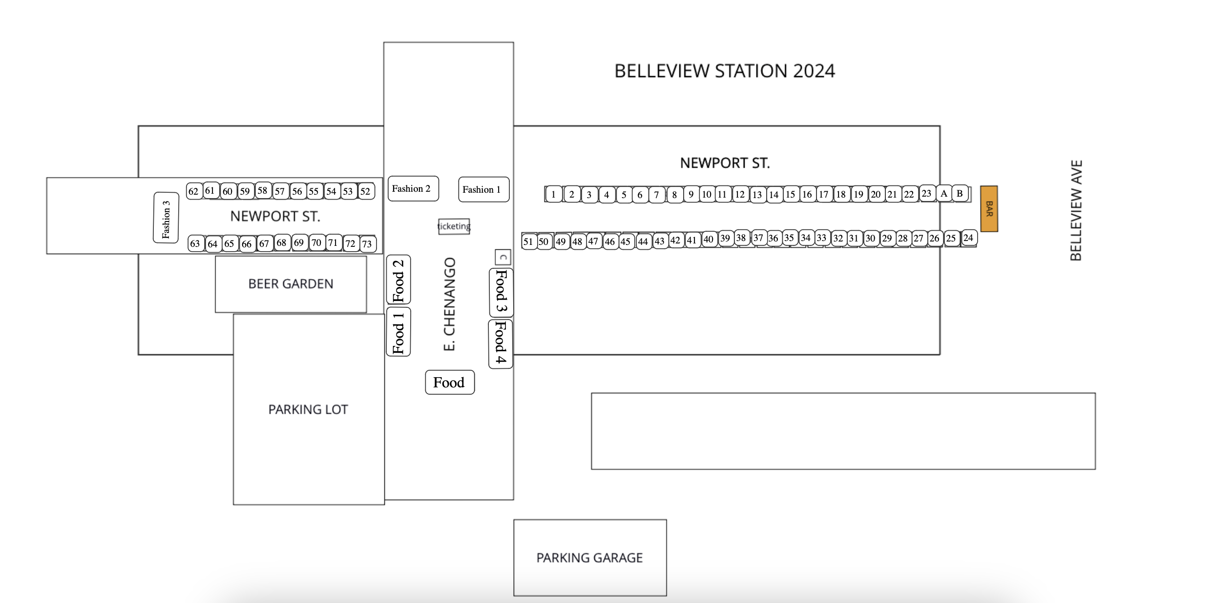 There are 2 parking garages on E. Chenango Ave and a large parking lot located across the street from the event, all of which are free for the first 2-3 hours. There is also ample street parking in the surrounding neighborhood. If you park in the Surface Parking Lot, please be sure to register your license plate at one of the provided QR codes to avoid any tickets or fees. Once you park, head back to the event site to start setting up. Vendors are not permitted to park on Newport St south of Chenango Ave.
